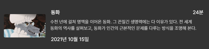 최근 넷플릭스 다큐멘터리 '익스플레인 -세계를 해설하다 - 동화편'를 보았습니다. 동화 역시 표준화가 진행되고 있다는 사실에 깜짝 놀랐습니다. 어린 시절 독서에 꼭 필요한 고전으로 인식되었던 책이 매혹적인 표준화 과정을 거쳤다는 것을 나는 알게되었습니다. 이 이야기의 뿌리는 내가 상상했던 것보다 더 깊었고, 무수히 많은 변형과 해석으로 뻗어 나갔다는 점도 알게 되었습니다.